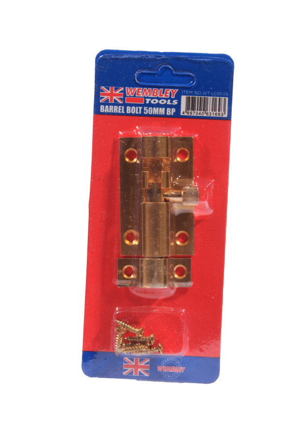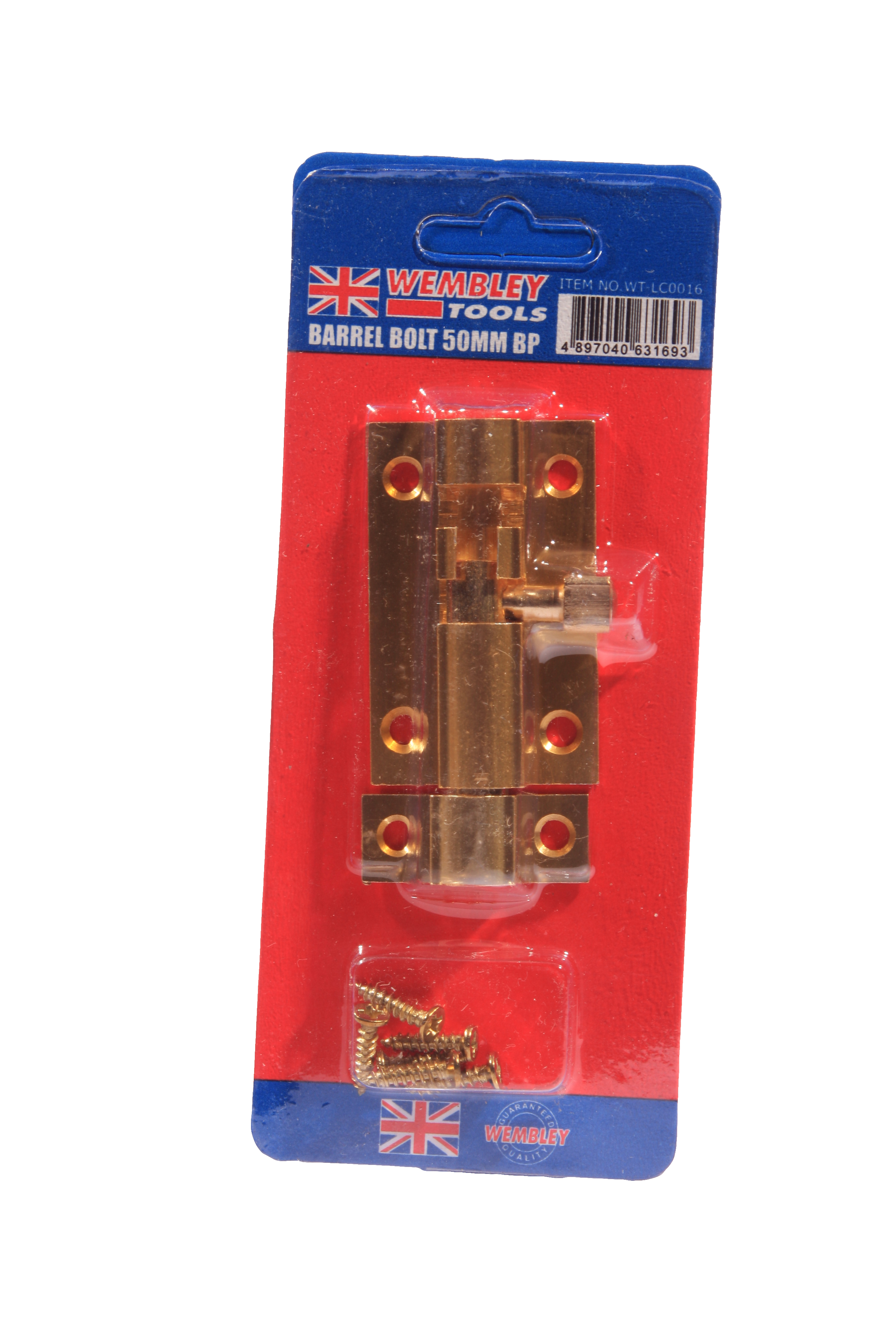 Wembley Tools Barrel Bolt Brass Plated 2 W/Screws